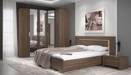 Дизайн изделий, входящих в набор для спальни «Джаз» простой и лаконичный. Коллекция выполнена в изящном декоре «Орех Лион» с выразительными срезами цветков и ярко выраженными полосами контрастных оттенков, что задает особое настроение в созданном интерьере