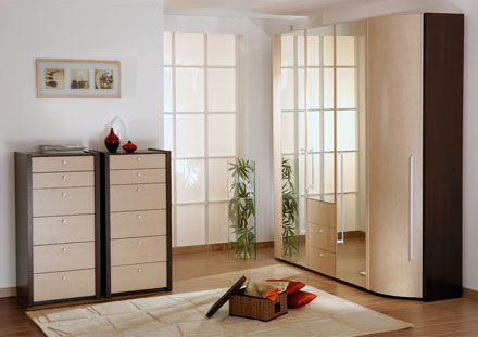 Шкаф «Галант» и кровать «Прима» Популярная спальня с изысканным дизайном и качественным исполнением. Возможно применение фасадов с покраской высокоглянцевой эмалью. Обратите внимание на элементы с радиусными фасадами.