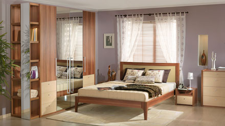 Шкаф «Галант» и кровать «Прима» Популярная спальня с изысканным дизайном и качественным исполнением. Возможно применение фасадов с покраской высокоглянцевой эмалью. Обратите внимание на элементы с радиусными фасадами.