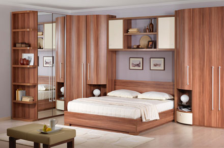 Шкаф «Галант» и кровать «Прима» Популярная спальня с изысканным дизайном и качественным исполнением. Возможно применение фасадов с покраской высокоглянцевой эмалью. Обратите внимание на элементы с радиусными фасадами.